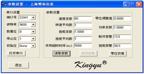 2. 确认端口号与所连接的端口符合后,点击“打开串口”,再点击“读取参数”, 已经设定的参数在相应的窗口显示如下图二: